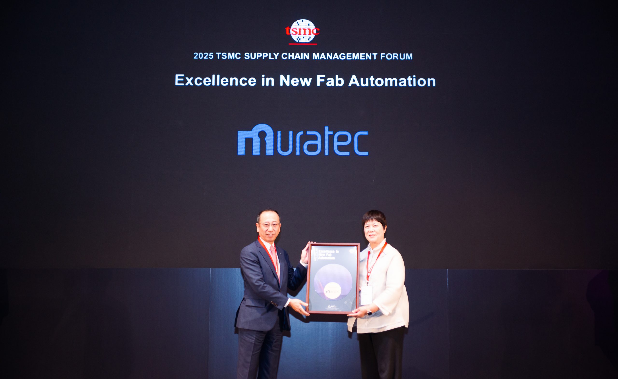 Murata Machinery, Ltd. (Headquarters: Kyoto, Japan; President: Daisuke Murata) was honored with the 2025 TSMC Excellent Performance Award in the category of “Excellence in New Fab Automation” by Taiwan Semiconductor Manufacturing Company, Ltd. (TSMC). The award ceremony took place during the TSMC 2025 Supply Chain Management Forum on November 25, 2025.